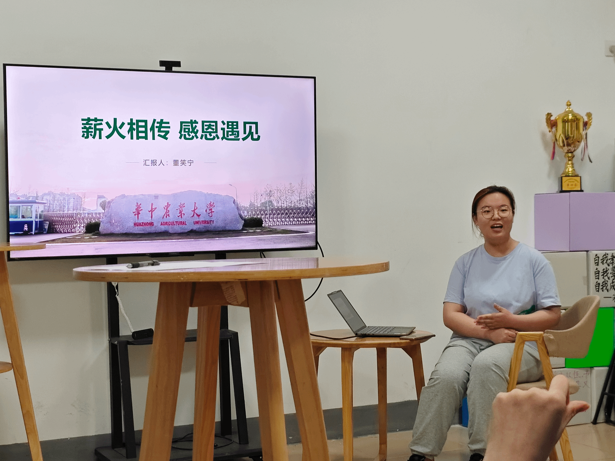 4月25日晚,智慧农业书院于荟园学生社区驿站H7-200活动室举办第十八期“学长学姐伴我行”活动。2021级张之洞班董笑宁、植科2102班刘一鸣受邀以“才俊竞锋芒 优班绽荣光”为主题和同学们展开交流,带领同学们了解学生班主任助理、下班党员的选拔流程、主要工作及注意事项。