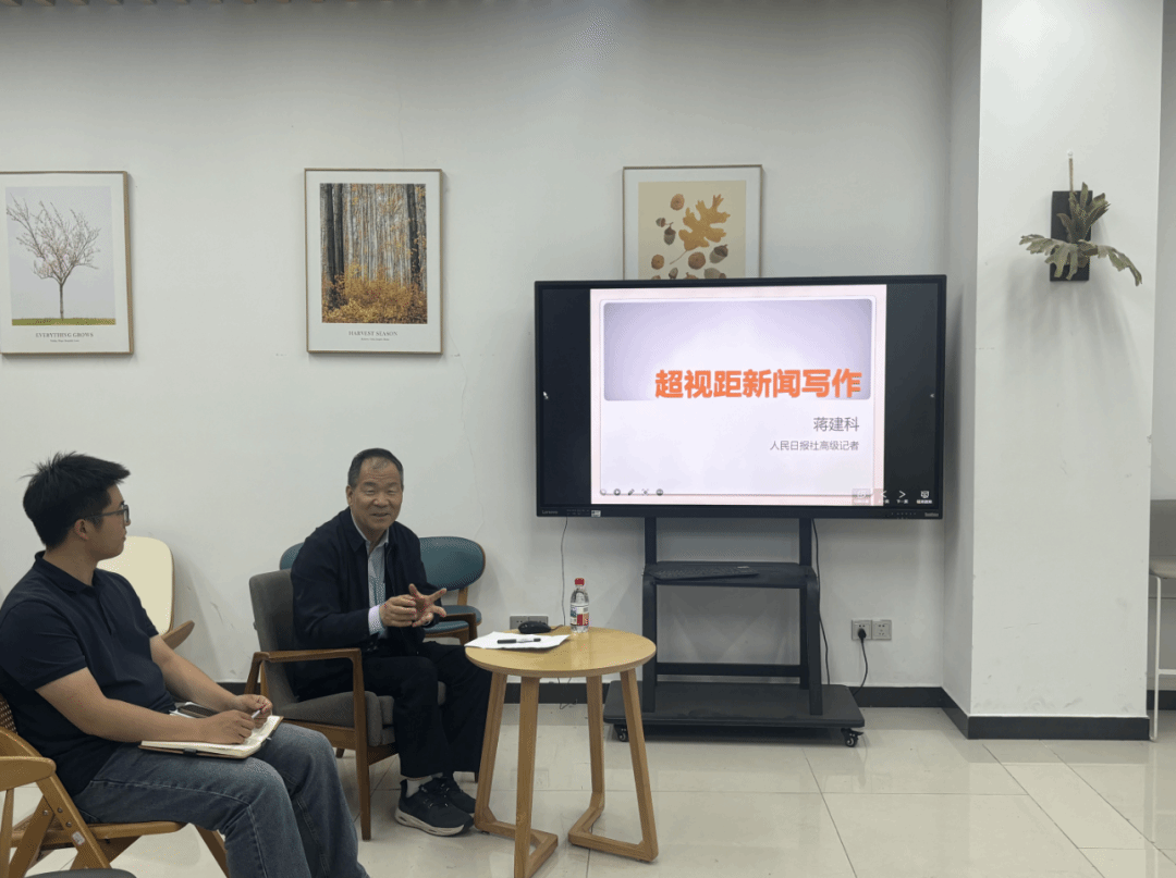 在自由讨论环节,蒋建科鼓励同学们努力提升自身的专业知识,培养逆向思维,从身边寻找超视距新闻点并进行前瞻性思考。针对有同学提出的校园新闻如何创新、新媒体短平快的背景下如何策划有流量又符合大学生时代意涵的新闻等常见问题,他结合工作经验和校园新闻特点,与同学们一一作了讨论。
