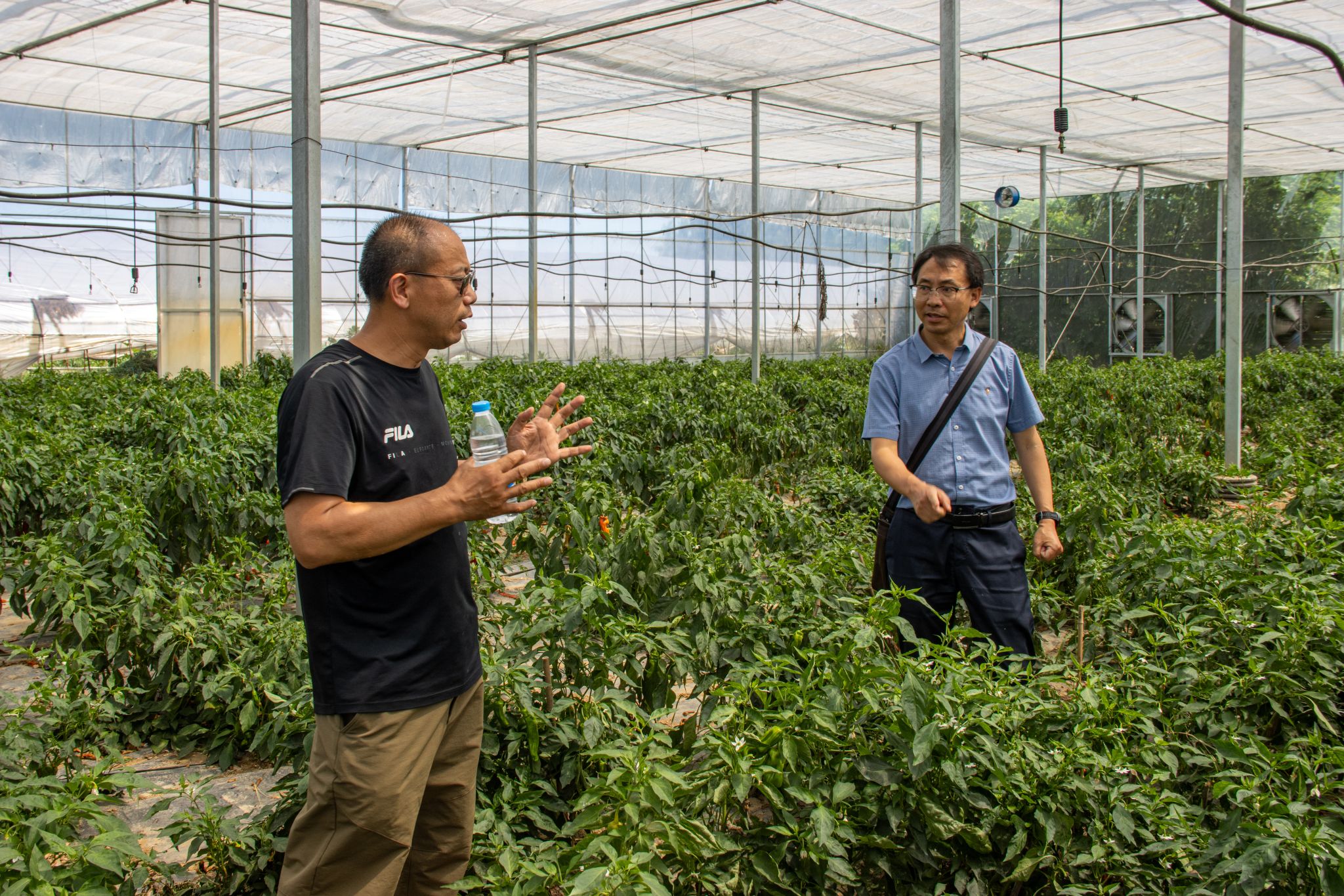 当日上午,师生一行抵达湖北大沃生态农业有限公司大棚蔬菜种植基地。公司总经理汪文俊围绕武汉地区气候与地形特点,系统讲解了辣椒种植的关键技术。汪文俊指出,辣椒虽具有常年开花、持续结果的特性,但受武汉夏季高温影响,即使配备温控设备,棚内温度仍难以精准维持在最佳生长区间。因此,当地辣椒种植普遍需在七月前完成播种。