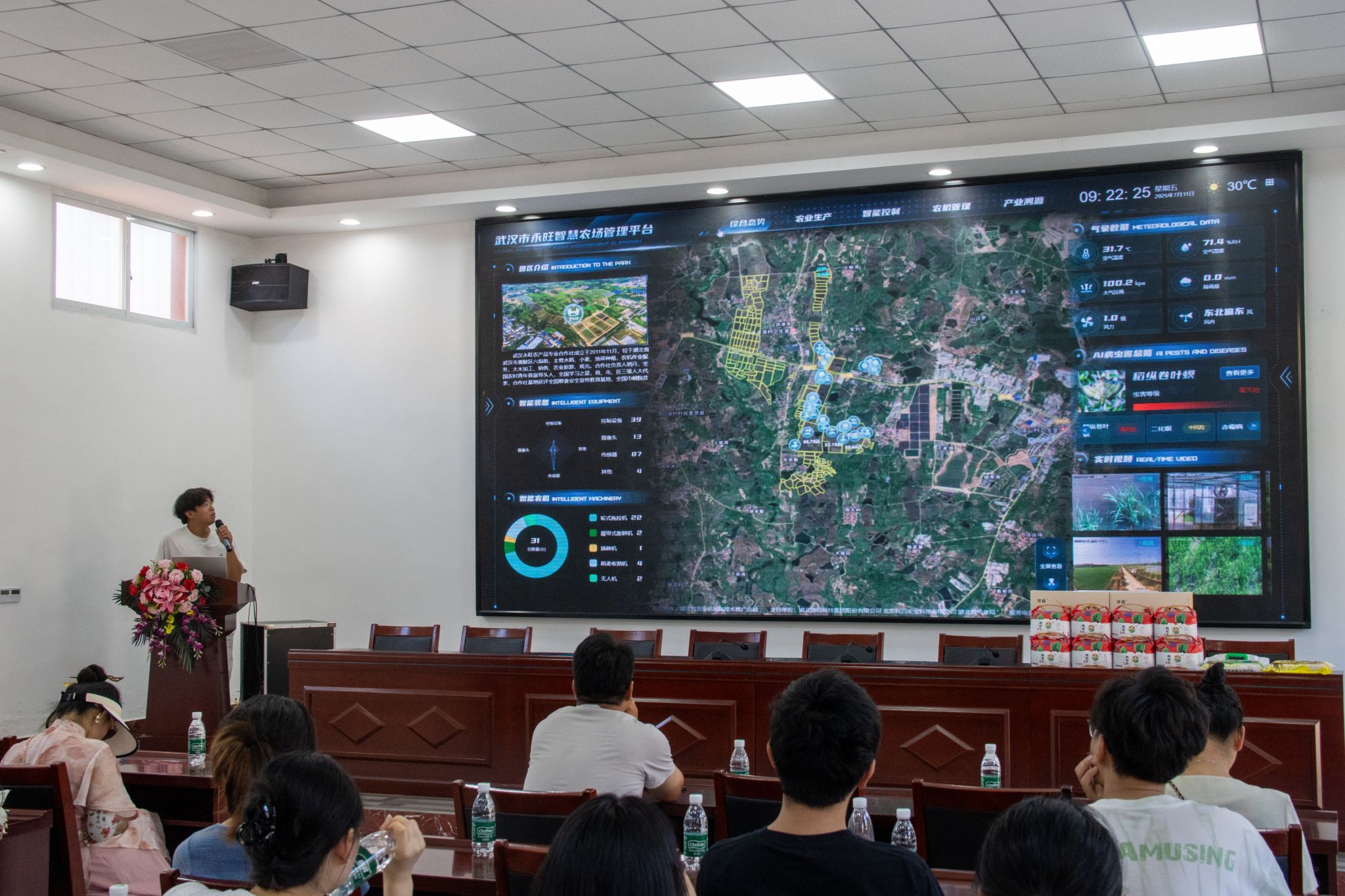 在农场可视化管理平台,陶哲向大家展示了集卫星遥感、无人机监测、智能农机作业与农业物联网设备于一体的“空天地一体化”数字农场管理系统。该平台可实时显示作业情况、农机状态、气候数据等信息,并支持从种植到销售的全过程数据追溯,有效保障农产品质量安全可控。