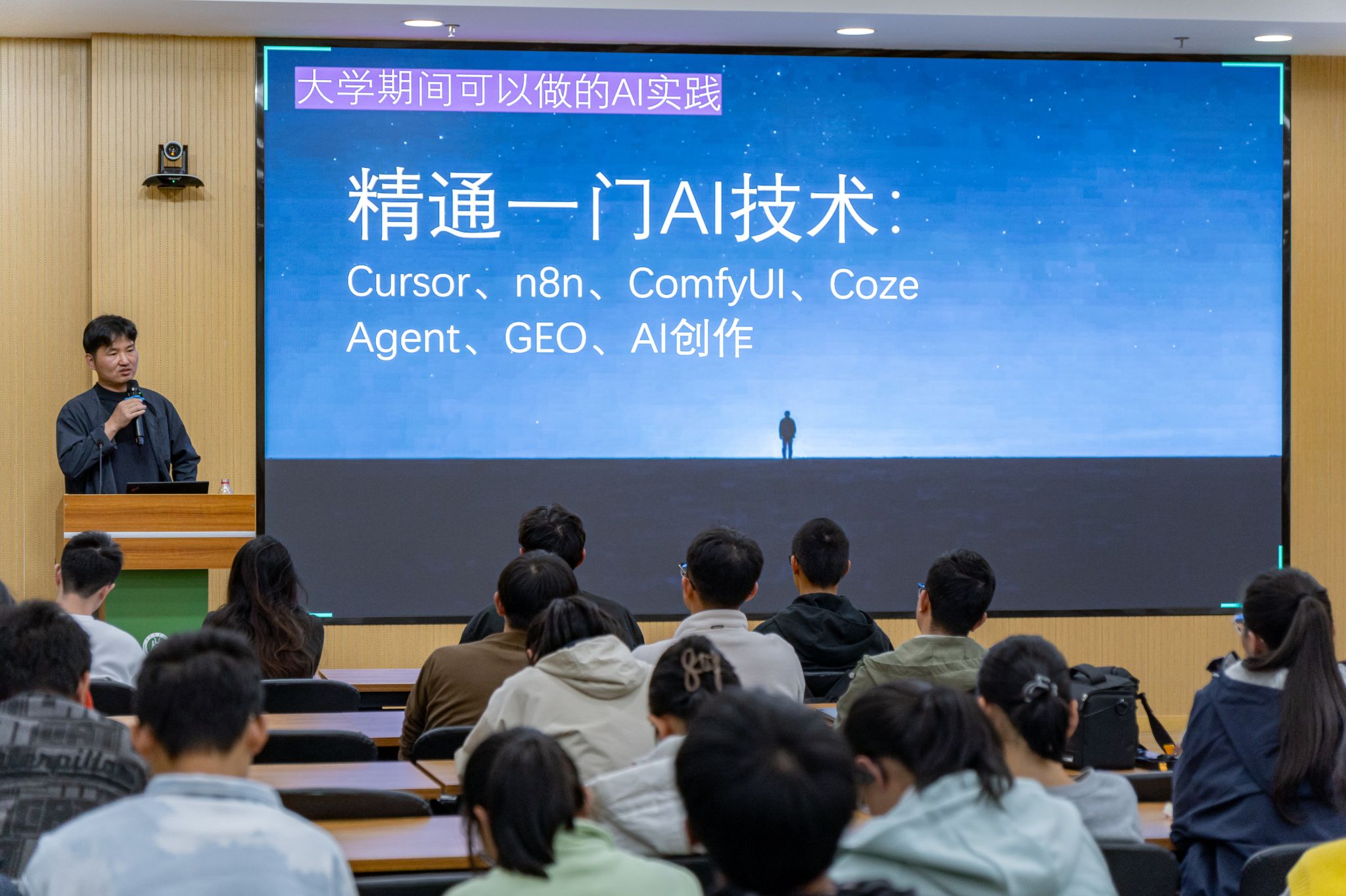 除了六大硬核技能,左晟还特别强调了三个重要思维模式的转变。他呼吁同学们从被动的“消费者”转向主动的“创造者”,要主动调教算法、突破信息茧房,并以不自我设限的心态,主动求索如何利用AI工具去创造和解决实际问题。