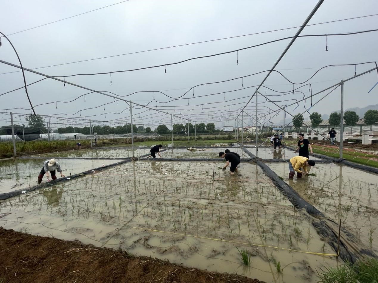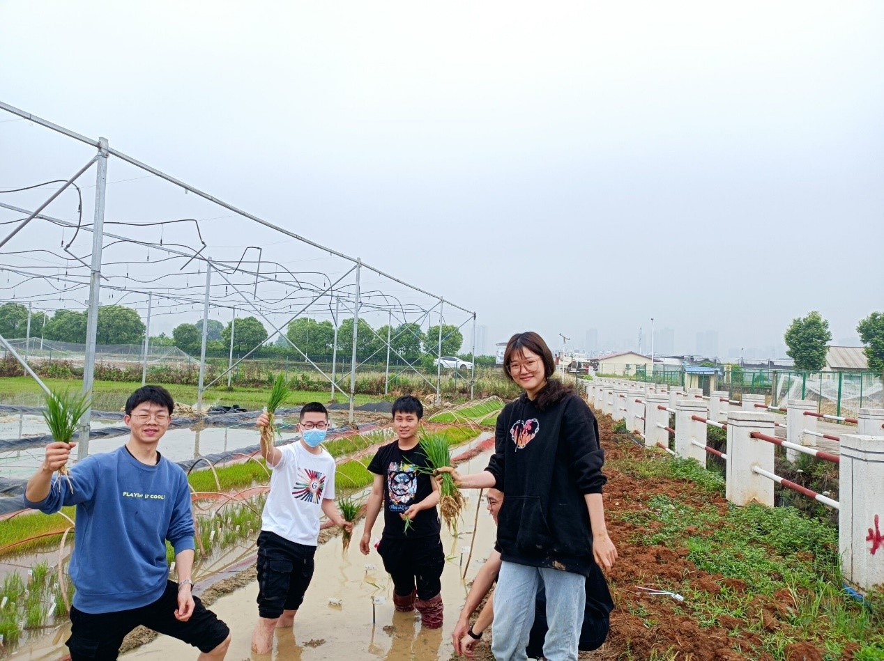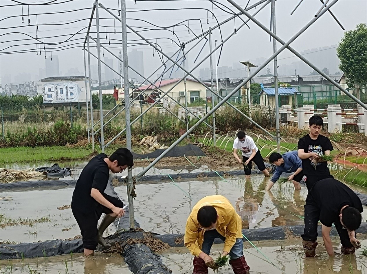 随后,博士生党员沙干同志从水稻的育秧、分蘖、孕穗等八个生长阶段讲述了水稻的一生,并结合自己的科研经历指出,“农业科研一定要与农业生产实践相结合,只有这样最终的科技成果才能被农民所运用。”同时,沙干同志进行了现场教学,讲解和演示了手工插秧的要点和技巧。在分配好劳作工具后,全体支部成员撸起袖子,挽起裤脚,手拿禾苗,“扎”进耕好的水田里劳作,亲身体验农耕劳作的不易。