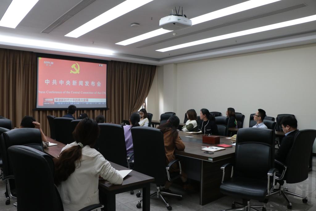 1024日上午,学院行政党支部全体成员在第三综合楼集中观看学习了中共中央新闻发布会。