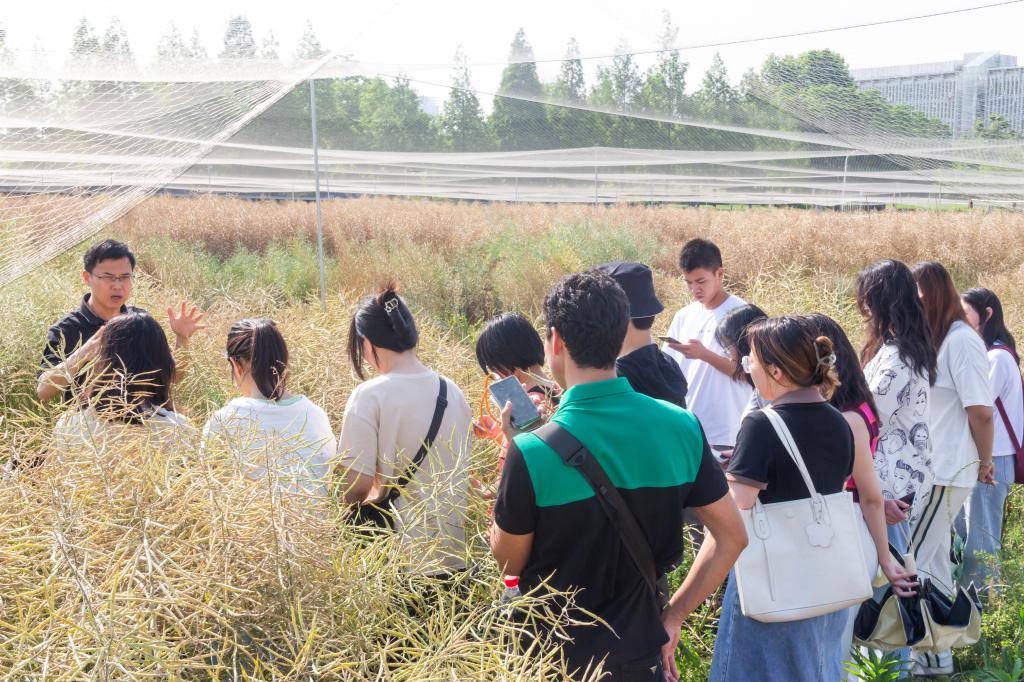 汪波以活动主题走进试验田油菜地里琵琶黄为引,向同学们介绍了油菜枇杷黄的形成原因和对于生产的指导意义,激发了同学们的参观热情。参观试验田途中,汪波向同学们讲述了油菜的“前世今生”和重要用途。油菜是我国重要的油料作物,也是优质的蔬菜和饲料。油菜不仅能提供食用油、蛋白质和维生素,还能改良土壤、防治病虫害、净化环境、美化景观等。他指出,目前我国油菜的种植面积和产量在全球位居前列,但在品质、抗逆性和利用效率方面还有很大提升空间。