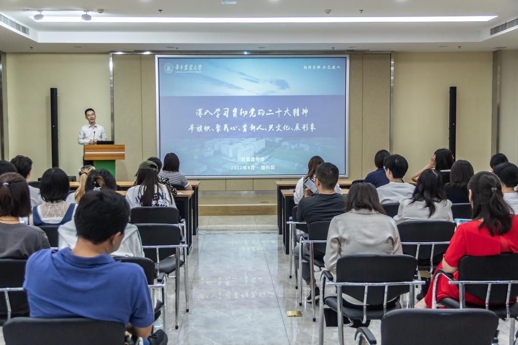 9月28日下午,学院综合素质能力提升培训之媒体素养于第三综合楼A705开展,党委宣传部副部长常慕佳围绕“深入学习贯彻党的二十大精神-举旗帜、聚民心、育新人、兴文化、展形象”与师生开展主题报告交流,学院行政办公室、实验教学中心、科研助理、学生宣传骨干近80人参与此次培训,活动由学院副院长姜海主持。