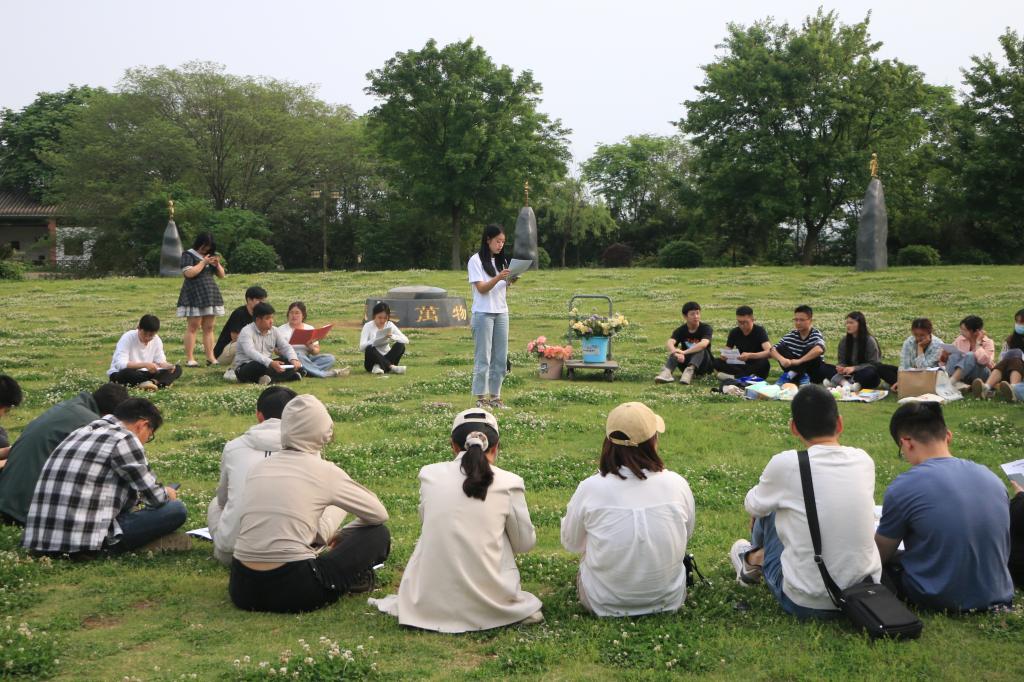 当日正值世界地球日,大家席地而坐,围成地球的形状。首先由谢晓麒、张志领学总体国家安全观的来源、发展、主要内容,周涵分享心得。