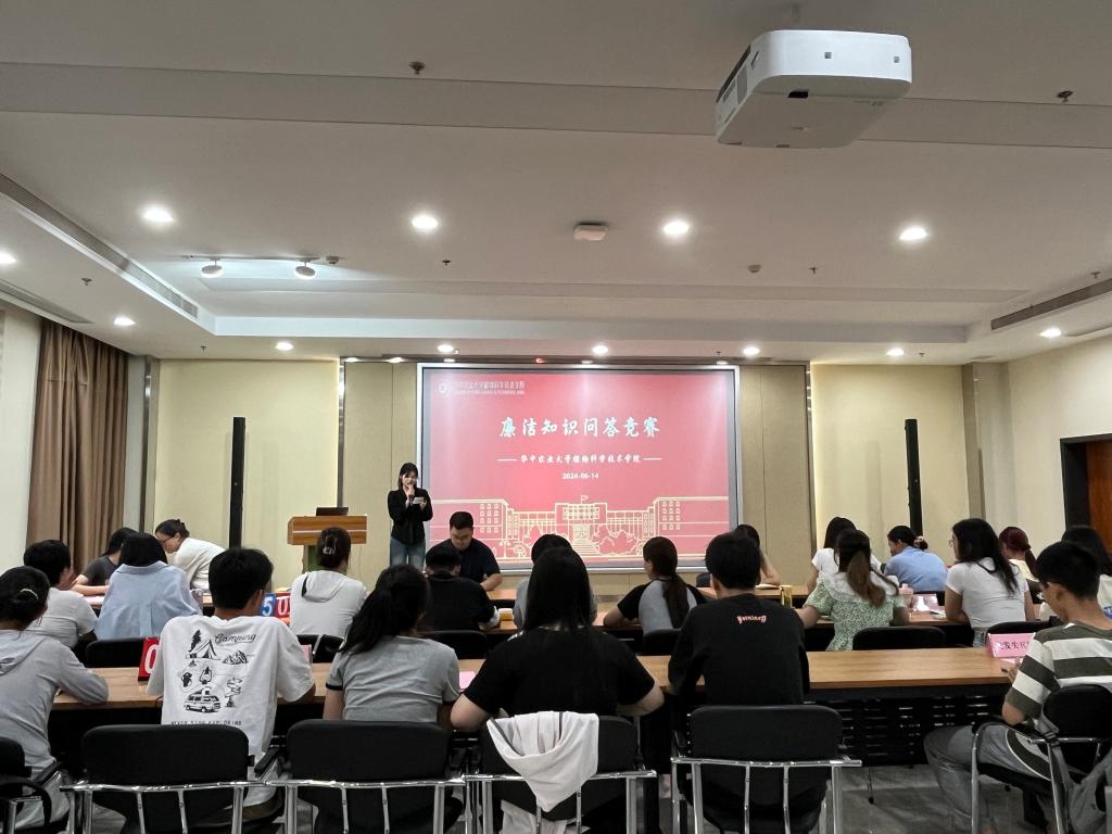 为贯彻落实《教育部办公厅关于举办第九届高校廉洁教育系列活动的通知》相关精神,推动党纪学习教育走深走实。6月14日,我院于第三综合楼A705开展廉洁知识问答竞赛活动,来自本研7支队伍26名选手、辅导员任伟、宋慈老师参加此次活动,活动由研究生党建中心赵彦彦主持。