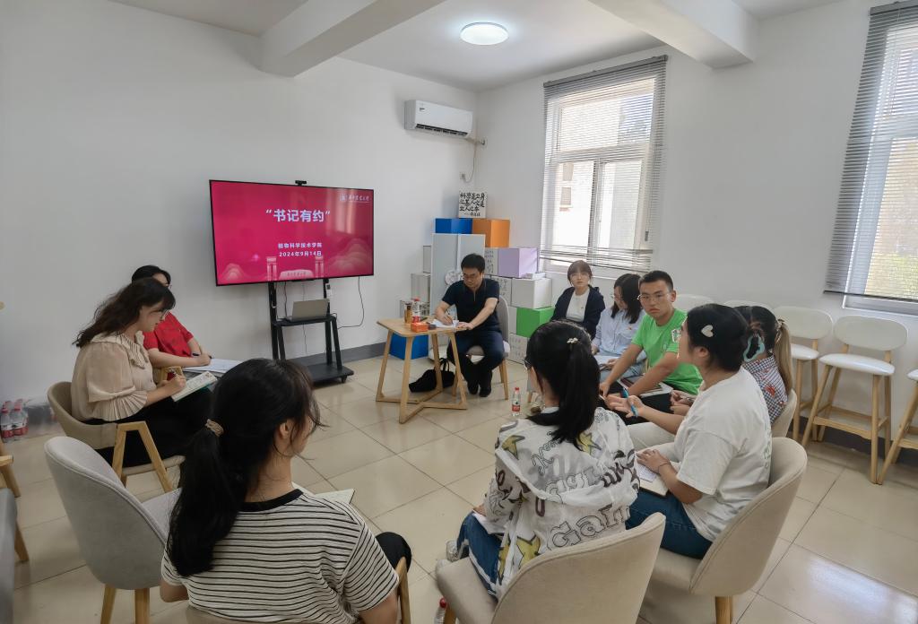 9月14下午学院十三“书记有约”活动顺利开展党委书记周雄本科生党支部书记进行交流