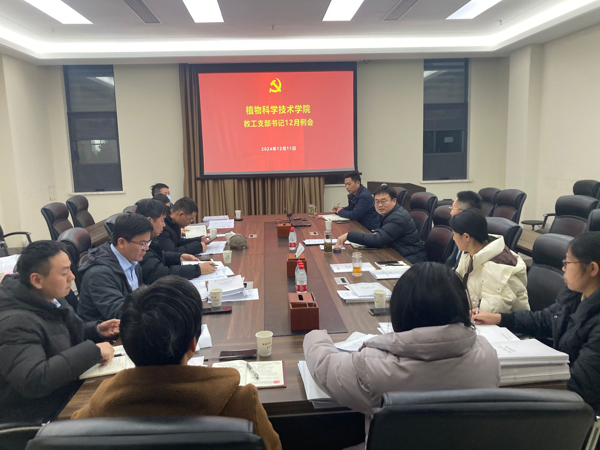 12月11日 下午,学院召开12月教工支部书记工作例会,各支部书记、支委代表参加,会议由学院党委书记周雄主持。