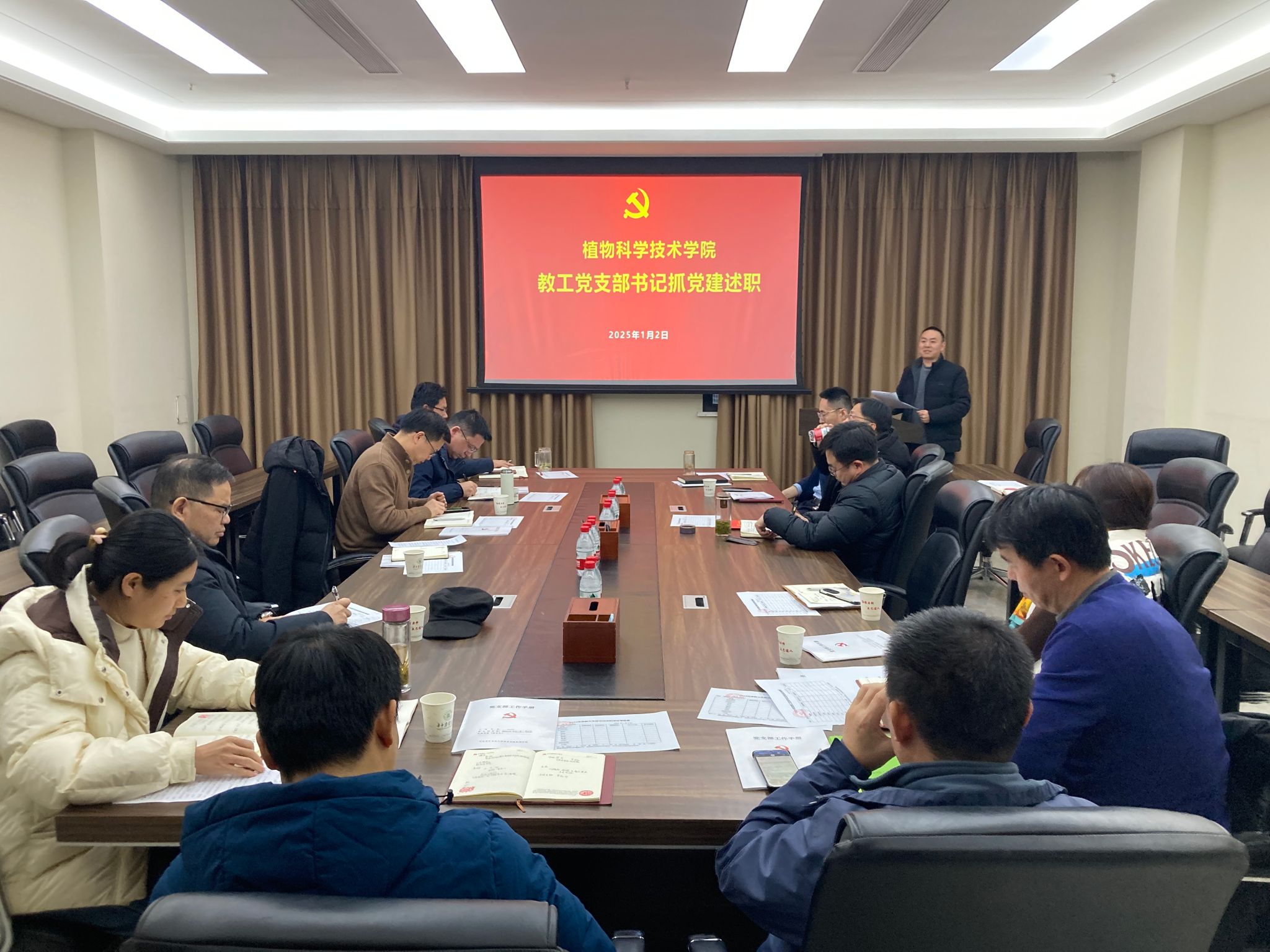 会上,9位支部书记分别围绕“学思践悟,建强支部堡垒作用;前置把关,守牢支部政治底线;教育提醒,强化师生风险意识;一融双高,推动事业高质量发展;检视剖析,以质图强融创致新”进行述职汇报。