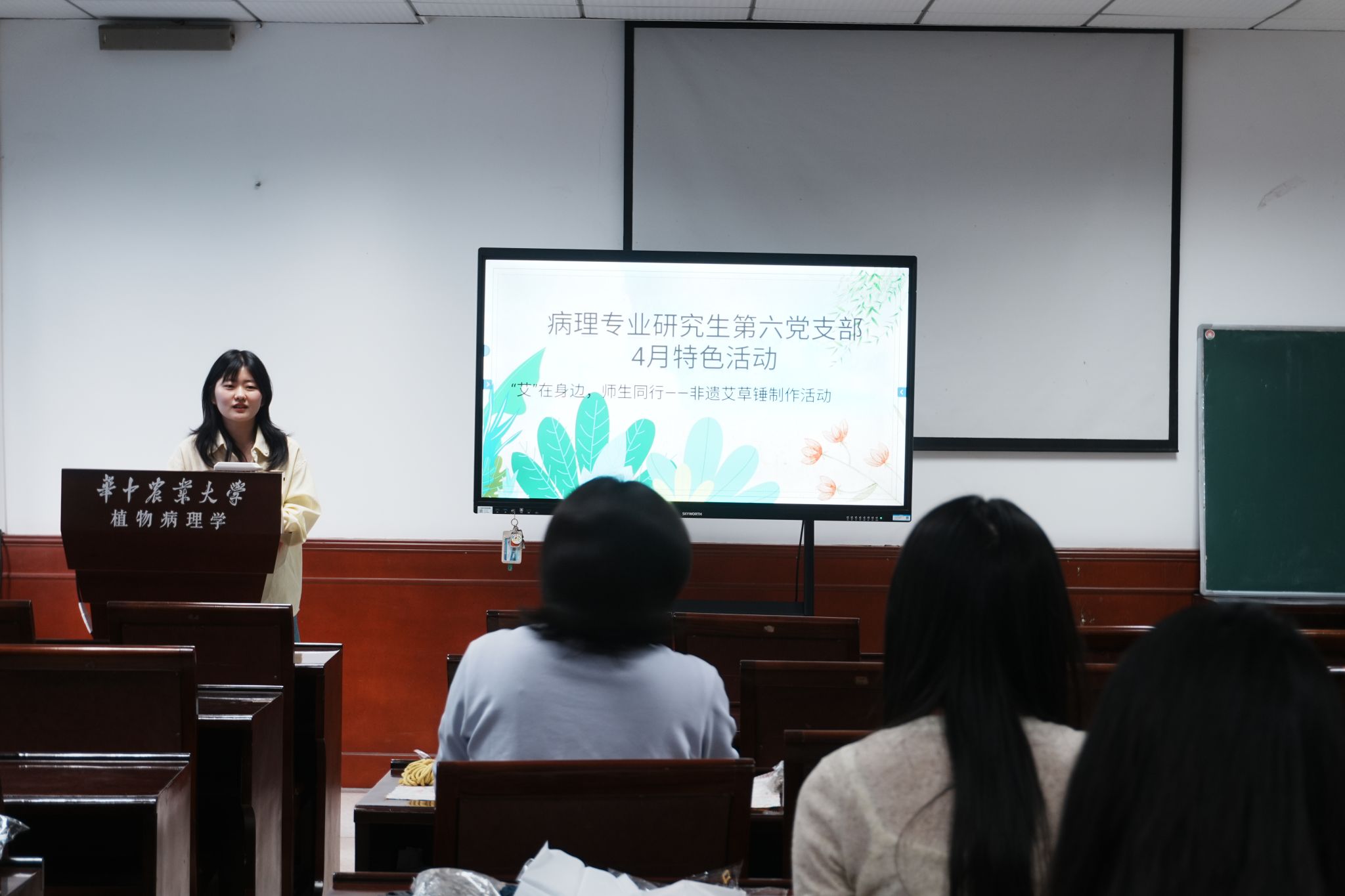 活动伊始,支部书记于璐涵介绍艾草锤的历史渊源,分享艾草在中医养生、民俗文化中的独特意义,向大家演示艾草锤制作过程。
